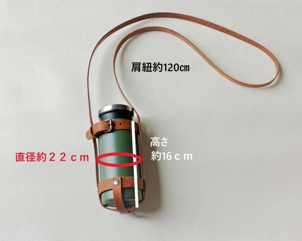 イタリアの革を使用しています ただの水筒が一瞬でおしゃれになります。 インスタ映え必至です! 上部のベルトは調節可能ですので、ペットボトルを入れることもできます。 size: 直径 約22cm 高さ 約16cm 肩紐 約120cm 素材:牛革 (イタリアンレザー使用) 直径22cmまでのボトルが入ります、 ※染色した革を使用していますので水濡れなどによる色移り、しみの可能性があります。 薄い色の洋服を着ているときは洋服に色がつくことがありますのでお気を付けく ださい。 万が一濡れた場合は柔らかい布でふき取り自然乾燥させてください。 また乾かすときにはボトルを中に入れ形をキープした状態でつるさず倒して置いてください。濡らした状態でつるすと肩紐が伸びる可能性があります。 ※革は天然素材ですので傷・色ムラ等がある場合がございます。 出来るだけきれいな部分を使用して製作しておりますがご理解頂きますようお願いします。 ※撮影時の光の加減・お使いのPC画面環境などにより、画像と実際の色が多少色が違う事がございます。 ♪当店で販売した商品については基本的に無償で修理をさせていただいております。 ただし、故意や経年劣化、部品の交換が必要な場合など一部修理代を頂く場合がございますので、まずご連絡ください。 creemaでも販売しております。 商品の評価はこちらをご参考にされてください。 ↓ ↓